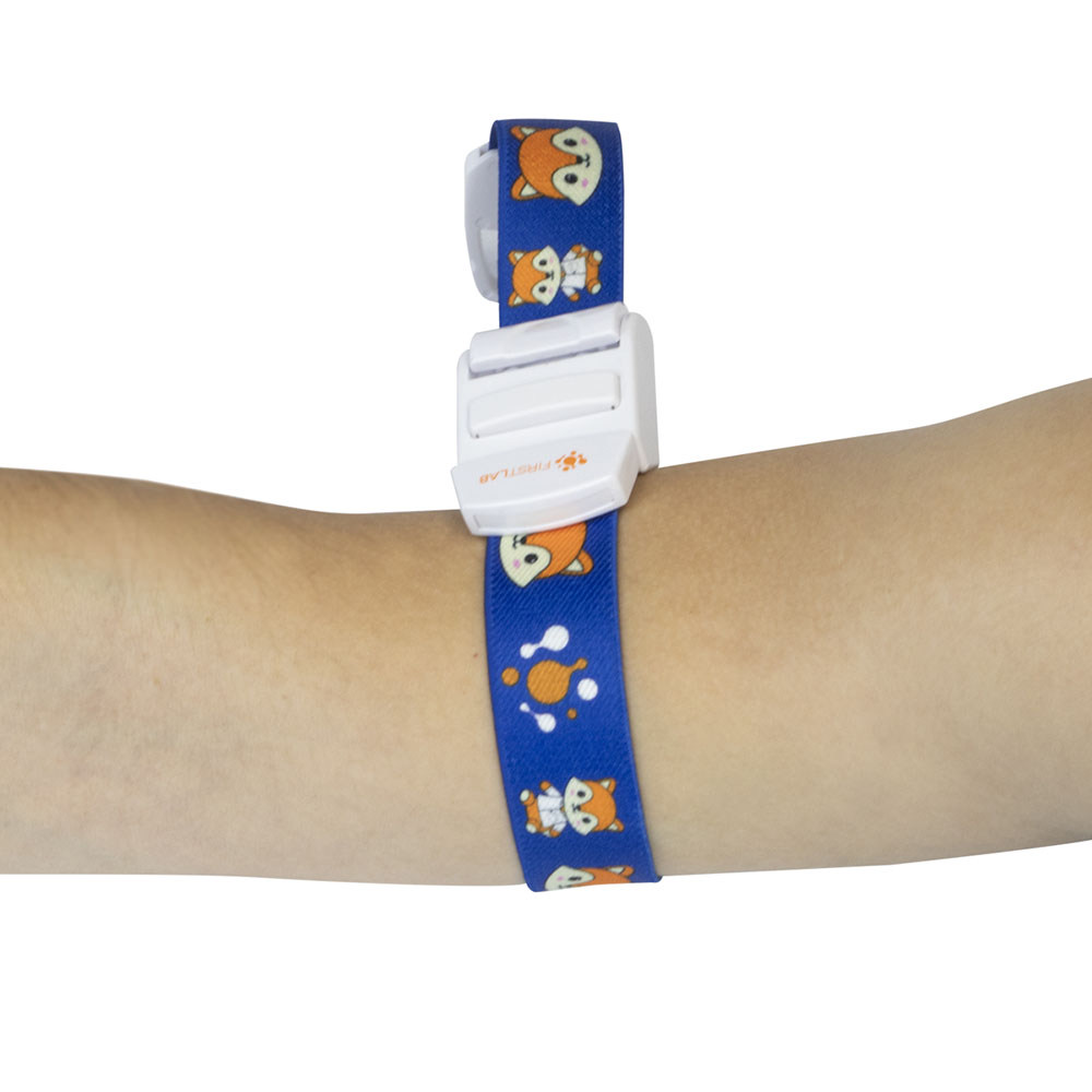 O Torniquete Elástico Infantil com Dupla Trava é utilizado para a constrição e controle da circulação sanguínea em procedimentos de coleta de sangue em crianças.